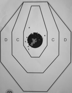 Nel miglioramento vi è elevata probabilità che abbiano influito uno o più dei provvedimenti adottati: la riduzione di resistenza del grilletto, l’eliminazione della corsa di retroscatto del grilletto e la risoluzione del conflitto tra dito indice destro e pollice sinistro. La percezione soggettiva mi orienta a indicare che i fattori più rilevanti sono stati l’eliminazione della corsa di retroscatto e la modifica dell’impugnatura.
