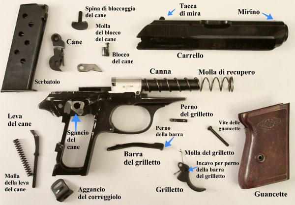 “E’ un po’ poco fare “bum bum” e non sapere altro”. Questa frase, udita ad un corso sulla manutenzione delle armi, mi ha fatto riflettere. Quando si prende coscienza che i propri risultati nel tiro al bersaglio non sono soddisfacenti, è essenziale studiare il modo di migliorare il risultato, esaminando il meccanismo dell’arma, le diverse modalità d’impugnatura, la carica e il tipo di palla delle cartucce. E’ opportuno evitare di manometterne francamente il meccanismo, in primis per motivi di sicurezza, ma anche per non compromettere il valore storico o comunque economico dell’arma. Infatti, considerando che le progettazioni sono rigorose, una significativa modifica nel meccanismo ha più probabilità di peggiorarne la qualità, che di migliorarla. Tuttavia, un’idea per qualche piccolo miglioramento nelle prestazioni può emergere, mentre si rigirano tra le dita i pezzi disgiunti del meccanismo smontato, a condizione di avere il coraggio di sopportare l’iniziale apprensione: riuscirò mai a ricomporli?
